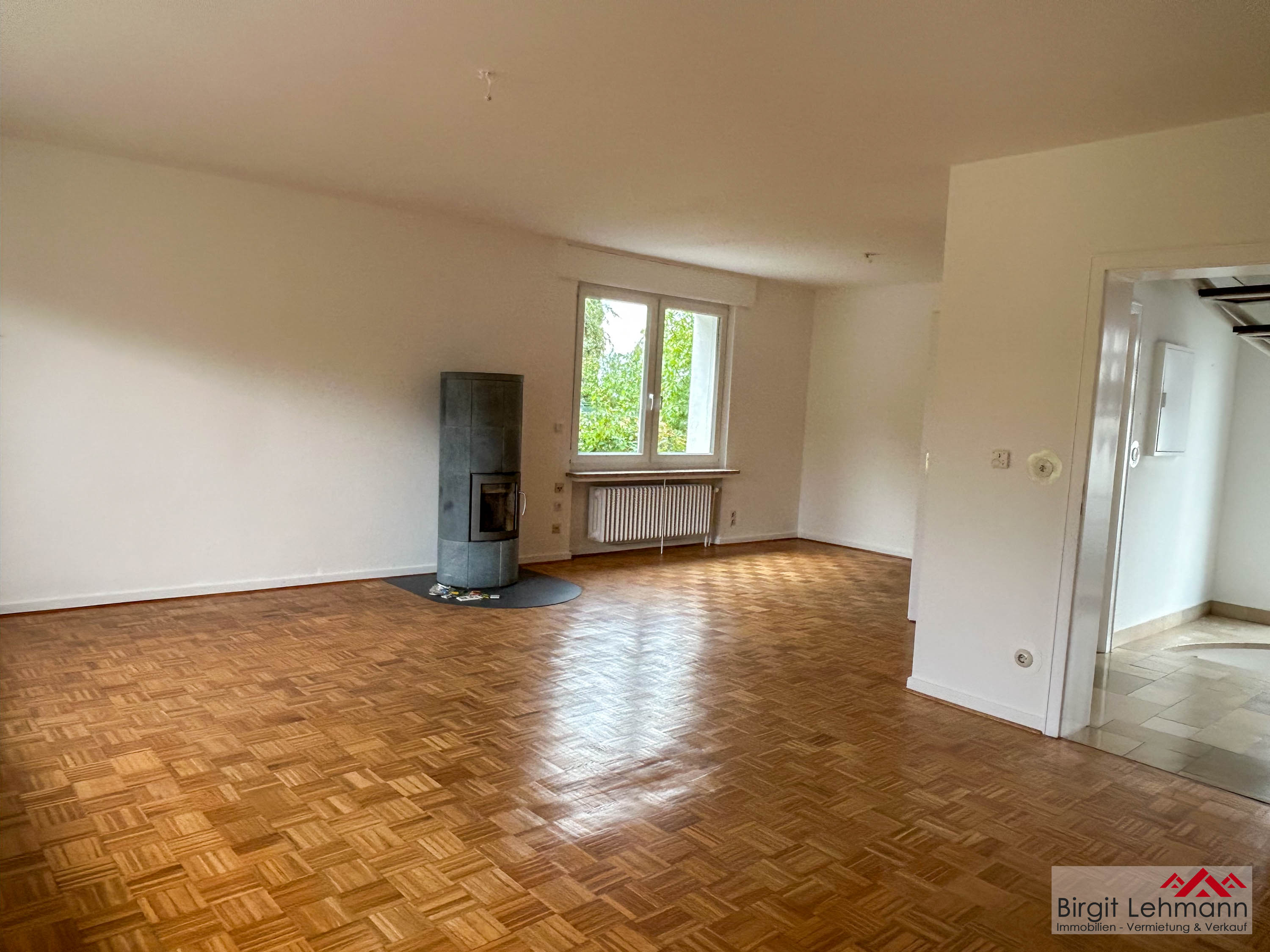 Im Erdgeschoss befindet sich das großzügige Wohnzimmer mit Kamin und angrenzendem Esszimmer. Vom Esszimmer gelangt man auf die Terrasse und in den Garten.